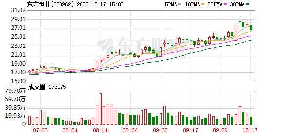证券日报网讯 10月17日晚间,东方钽业发布关于2022年限制性股票激励计划预留授予部分第一个解除限售期解除限售股份上市流通的提示性公告称,公司2022年限制性股票激励计划第一个解除限售期解除限售条件已经成就,本次符合解除限售条件的激励对象共计5名,可解除限售的限制性股票共计39,601股,占目前公司总股本的0.0078%。本次解除限售股份可上市流通的日期为:2025年10月22日。