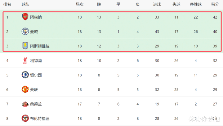 由于本轮阿森纳和曼城,也以2-1分别击败各自的对手,因此榜首的形势没有发生变化。截至目前,阿森纳依然排名第一,他们领先第二的曼城2分,维拉则落后榜首3分,继续排名第三。巧合的是,下一轮比赛,阿森纳就将在主场迎战维拉,这场比赛的结果,将对积分榜的形势,有重大影响。